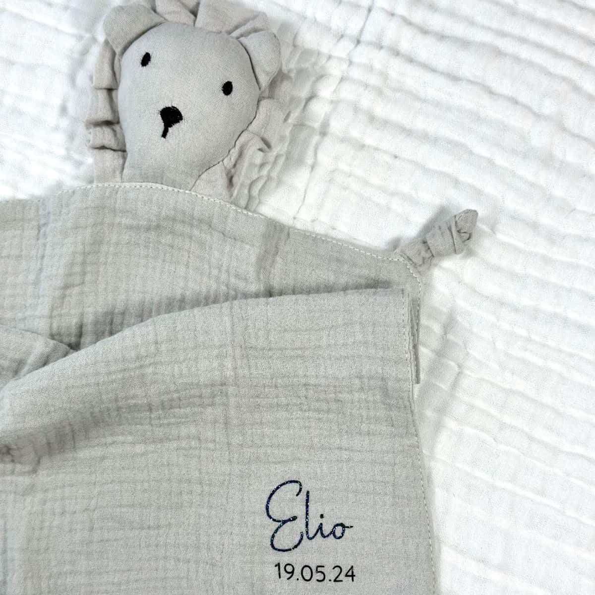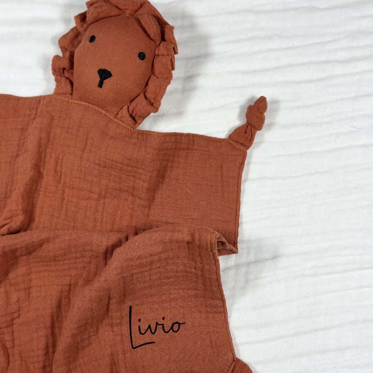 Doudou Lion en gaze de coton personnalisable | Doux compagnon de bébé disponible en 6 coloris
